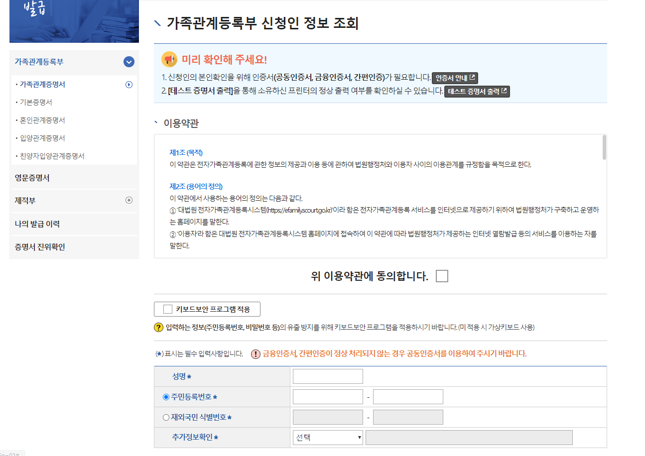 가족관계증명서 인터넷 발급