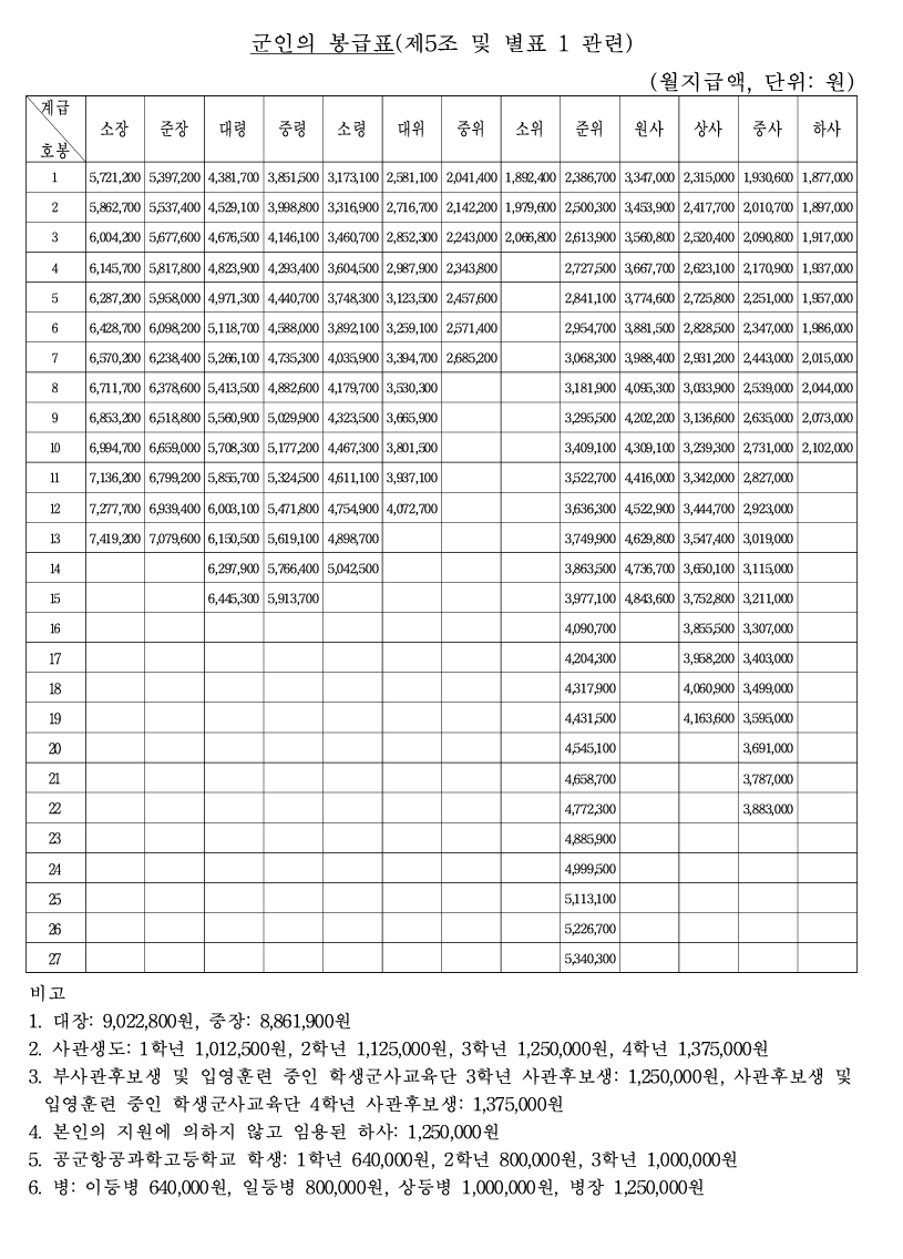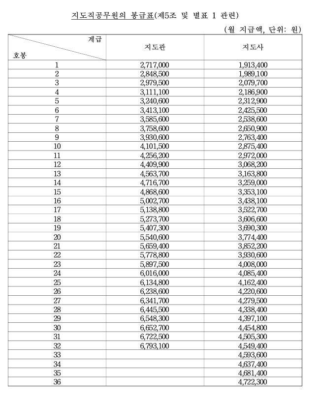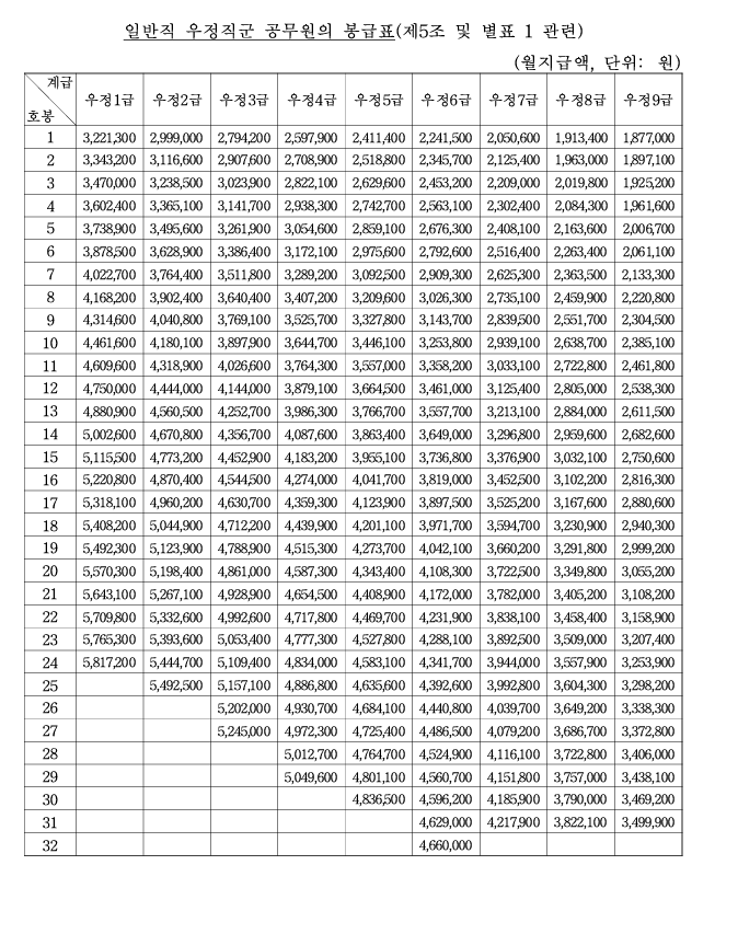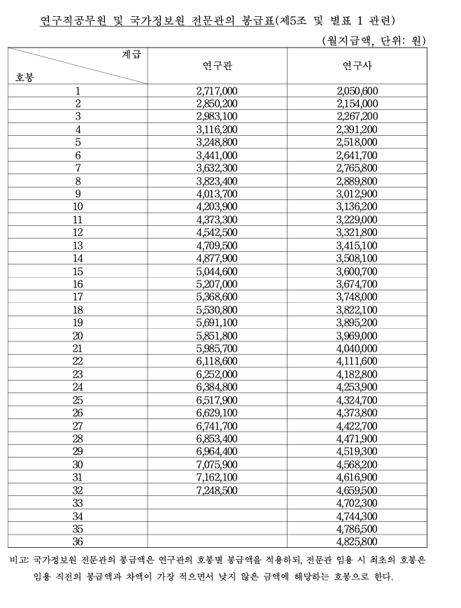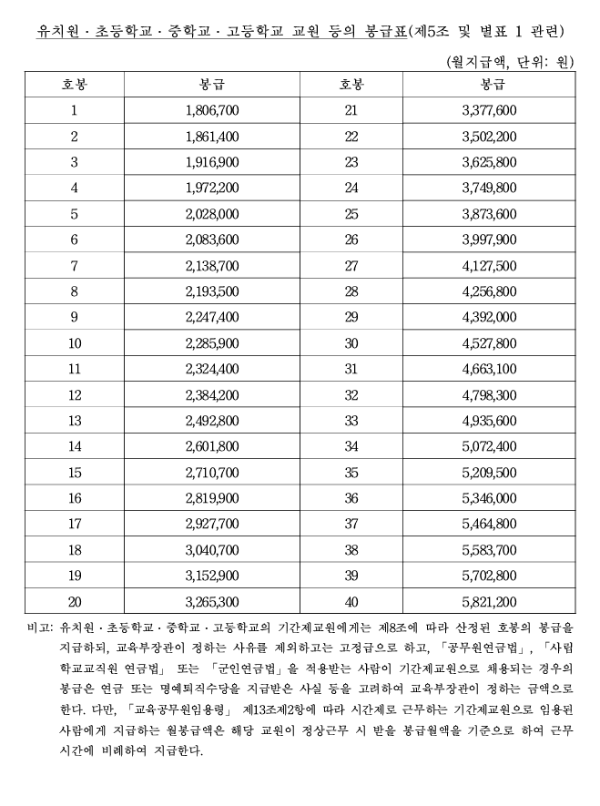 *참고로, 이 봉급표에는 각종 수당(상여수당, 초과근무수당 등)과 직급보조비, 급식비 등은 포함되지 않습니다.