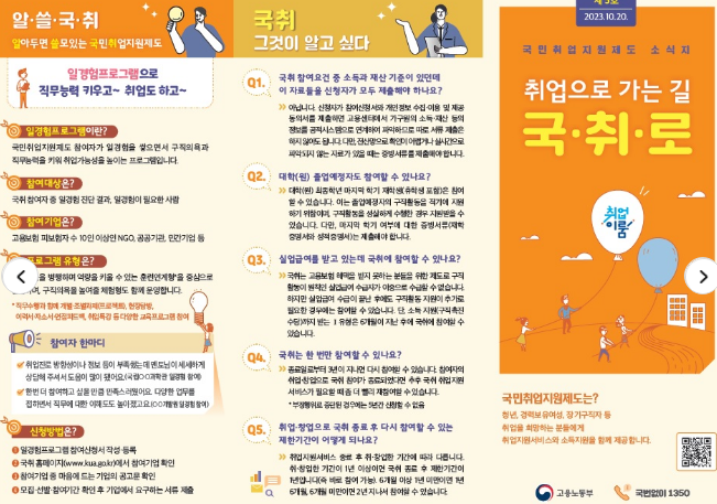국민 취업지원제도는 2021년 부터 시행된 제도로, 취업지원서비스를 종합적으로 제공하는 실업부조 기능을 하는제도입니다.