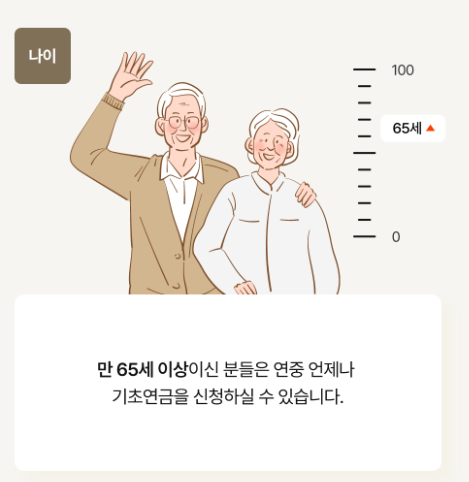 • 만 65세 생일이 속하는 달의 1개월 전부터 신청 가능합니다.