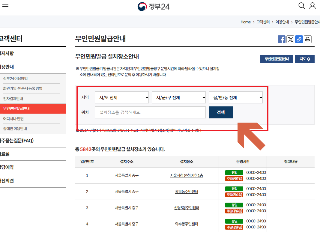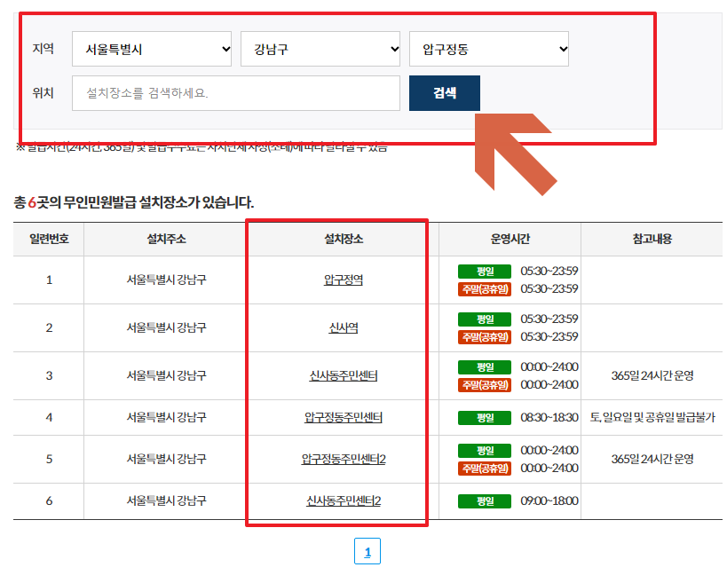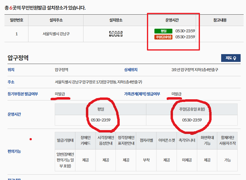 ✅3. 해당 설치장소의 서류 발급 여부 및 운영시간 등을 자세히 확인하실 수 있습니다.