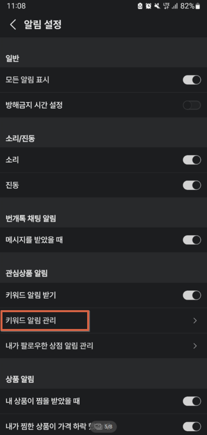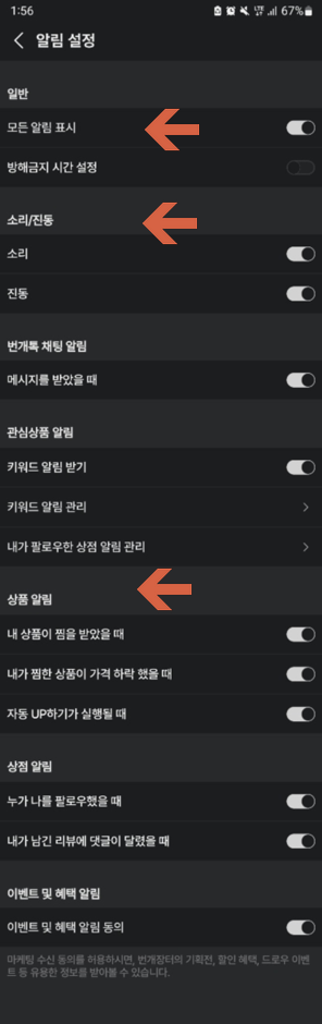 1. 번개장터 앱 들어가기 -> 우측상단의 종모양 클릭