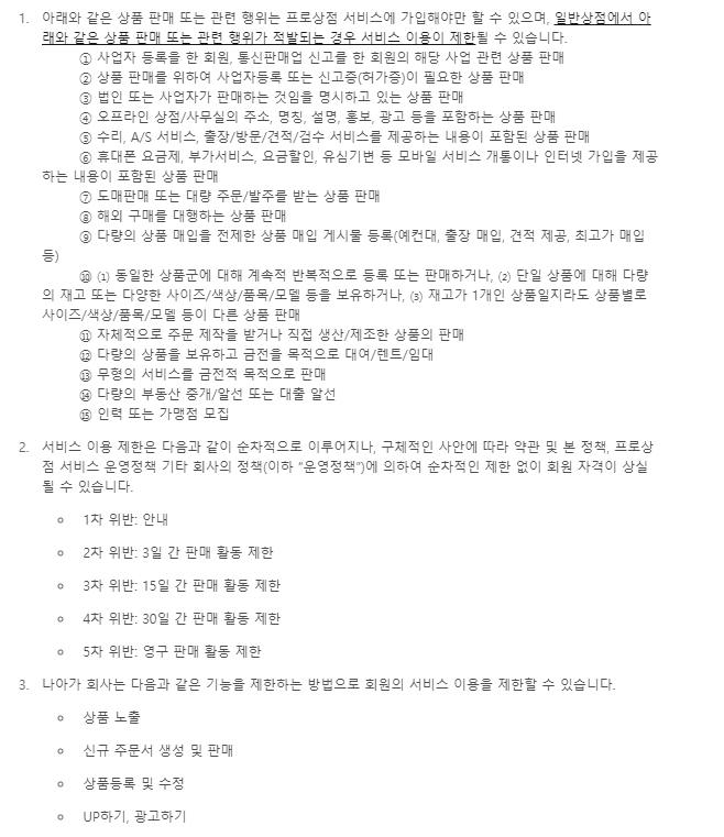 - 이외 매매 시 법률을 위반하게 되거나 법령상 판매가 금지되는 모든 물건