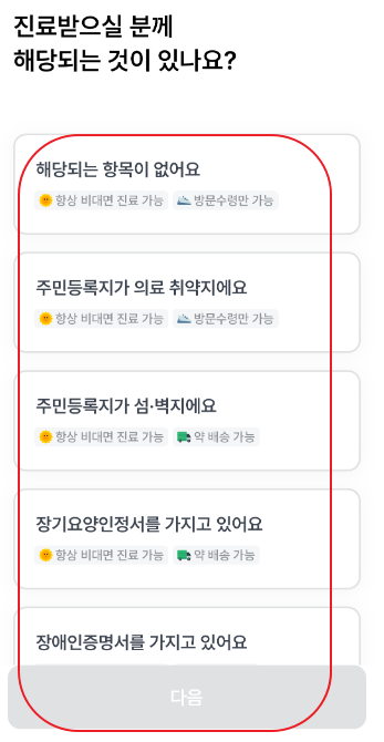 1. 닥터나우 앱 설치 후 정보 등록▶ 해당 항목 선택