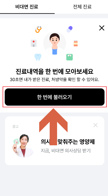 1. 닥터나우 앱의 더보기▶ 진료내역▶ 한 번에 불러오기