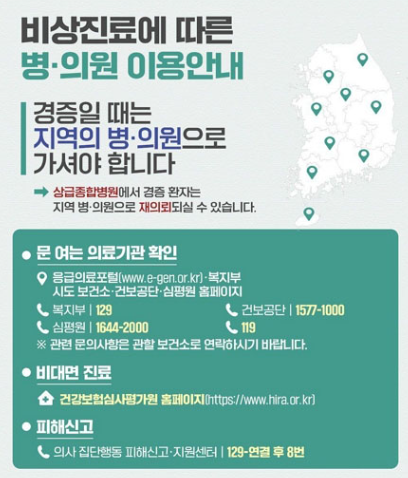 비대면 진료는 지금까지 의원급 의료기관과 재진 환자를 중심으로 하되, 예외적으로 의료취약지나 휴일·야간에만 초진이 허용되었지만 이번 전공의 이탈로 인한 비대면 진료가 전면 확대되면서 초진이라도 평일에 비대면 진료를 받을 수 있게 되었습니다.