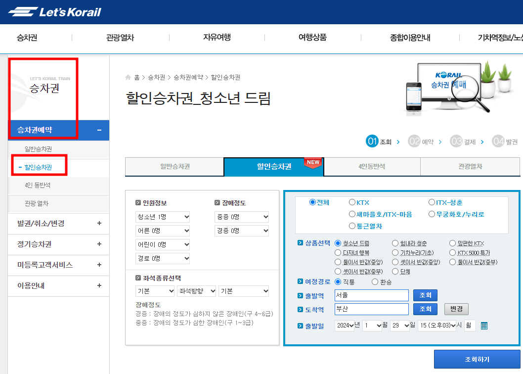 할인 승차권 선택 -> [설 특가 운임 30% 할인] 적용 후 구입 하시면 됩니다.