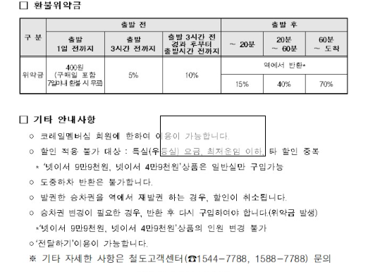 * 출발 후에는 도착 시까지 시간에 따라 15~70%까지 위약금을 차등 부과됩니다.