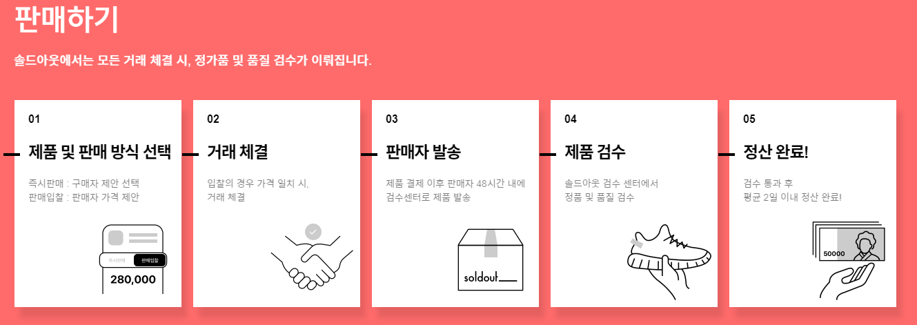 솔드아웃 회원이면 누구나 판매가 가능하며 아래 과정으로 진행됩니다.