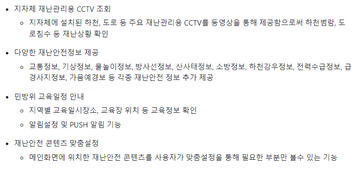 - 자연재해: 날씨 업데이트, 태풍, 폭우, 홍수, 지진 등 정보를 제공합니다.