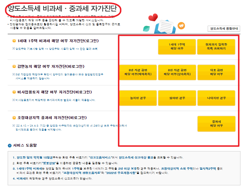 ㅁ 국세청 홈택스 > 비과세중과세 자가진단