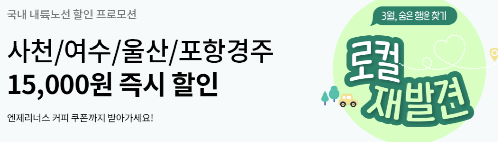 국내 4개 노선의 지방공항의 도착 편을 이용하면 할인됩니다.