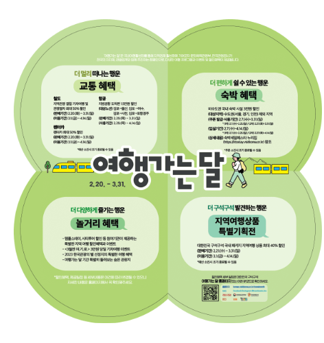 여행 가는 달 교통 할인 혜택은 항공, 철도, 렌터카가 등 다양한 혜택이 있습니다.