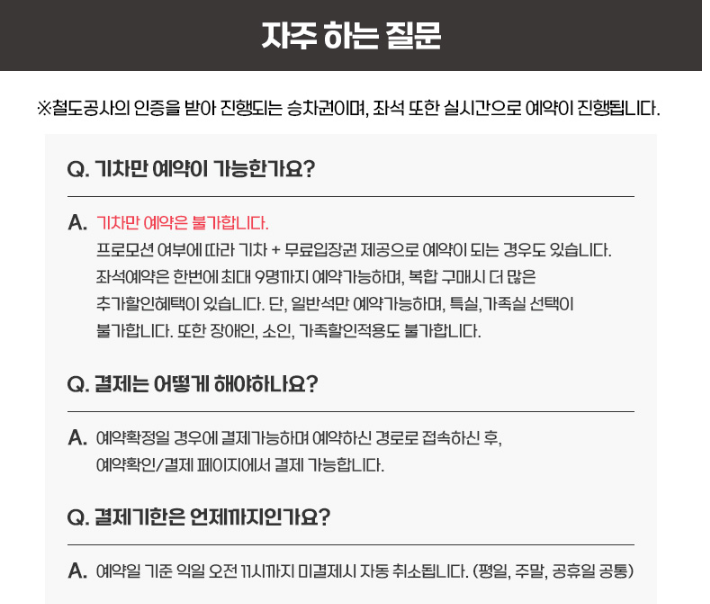 KTX와 숙박 입장권과 관광지 입장권 등의 상품과 함께 이용하면 주중에는 최대 50% 할인 가능합니다.