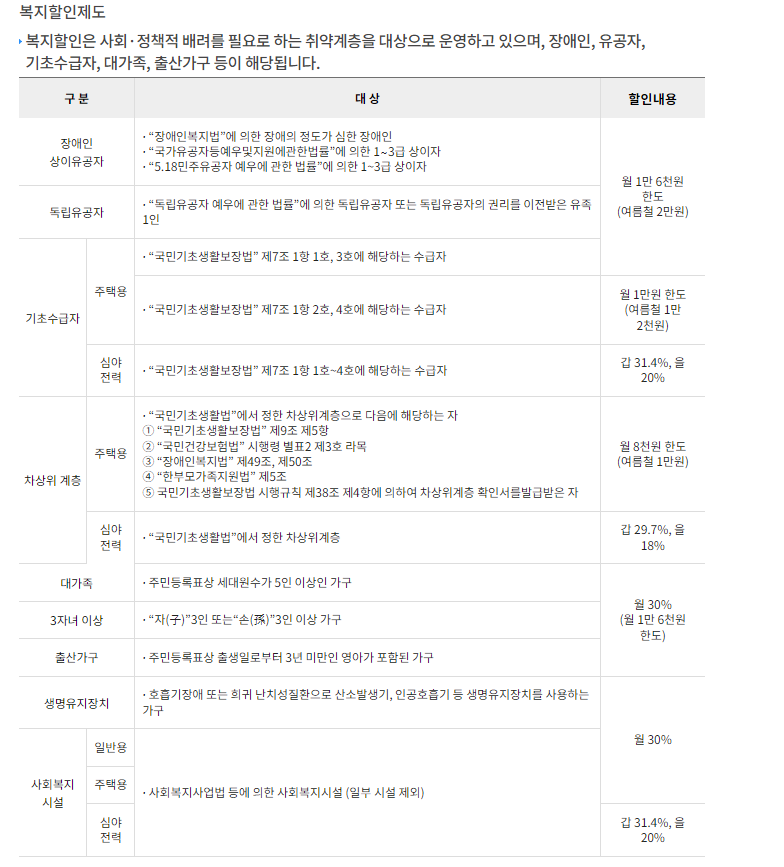 < 복지할인 대상자>