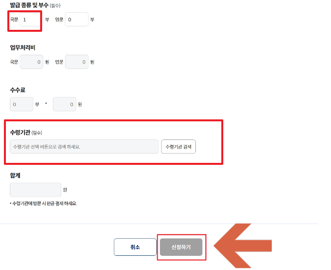 3. 발급방법을 선택하고, 신청서를 작성합니다.