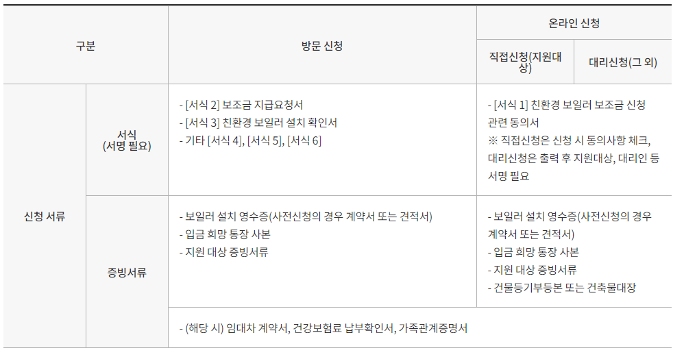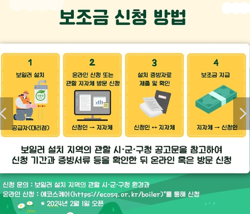 - 보일러 설치 지역의 관할 시•군•구청 공고문을 참고하여 신청 기간과