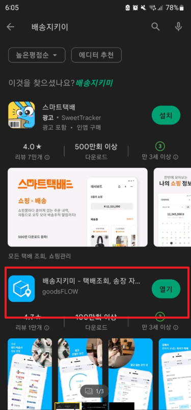 1. 구글 플레이로 들어가 배송지키미로 검색 및 설치(최초 전화번호 인증필요)
