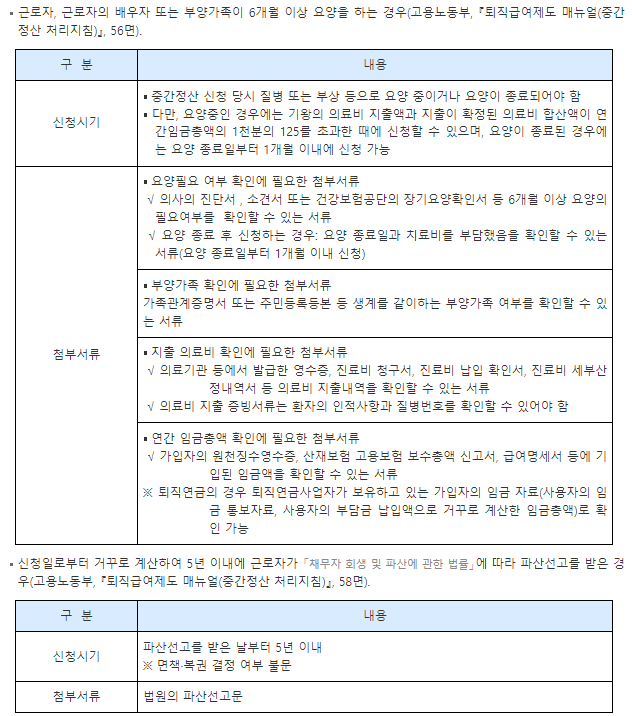 👉 근로자 본인이나, 배우자 또는 부양해야 하는 부양가족이 있을 경우 중간정산 신청이 가능합니다.