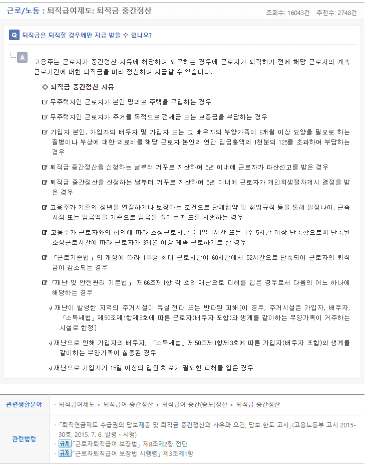 👉 가장 만저, 위에서 말씀드린 퇴직금 중간정산 요건에 해당되는지를 확인해 보셔야 합니다.
