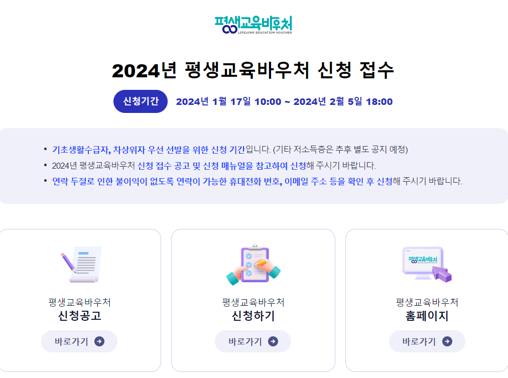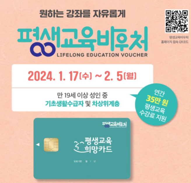 지원 대상자는 교육비를 1인당 연간 35만원 까지 지원발을 수 있으니, 평생교육 바우처의 신청대상, 신청방법 등을 빠르게 알아보고 혜택 놓치지 않게 서둘러 신청하시기 바랍니다.