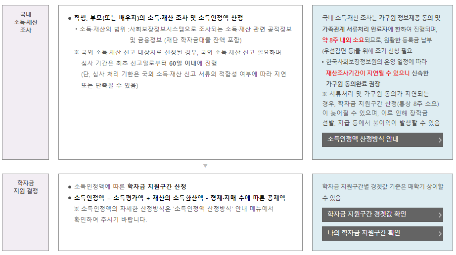 학국장학재단 홈페이지를 통해 자세한 내용을 꼼꼼히 확인해 보신 후 소득분위 확인을 통해 필요한 학자금 및 장학금 등 신청 기회 및 시기를 놓치지 않으시길 바랍니다.