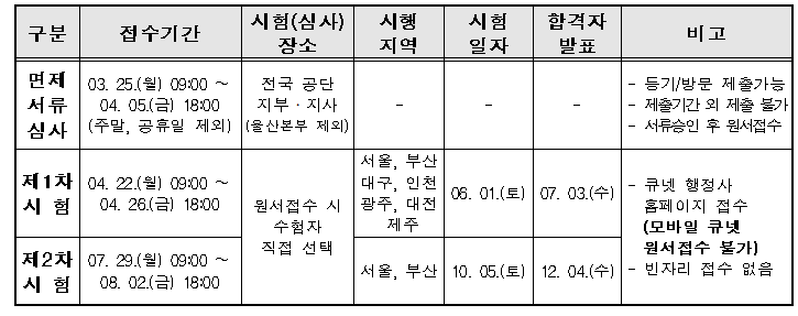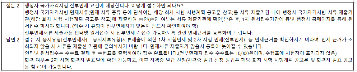 | 1차 시험 면제 및 2차 시험 일부 과목 면제 |