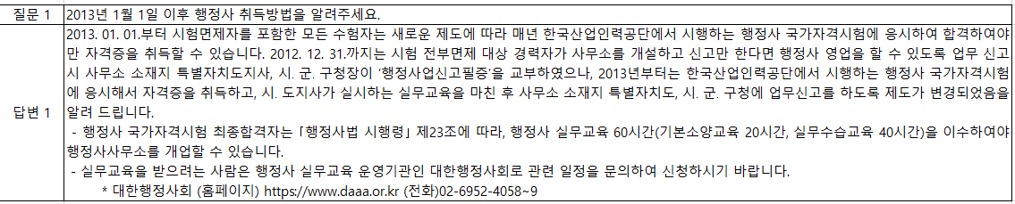 - 행정 관계 법령 및 행정에 대한 상담 또는 자문에 대한 응답