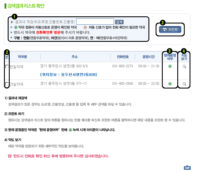 휴일지킴이 약국 홈페이지에는 휴일지킴이약국, 연중무휴약국, 약국지도검색, 검색리스트결과까지 한번에 모두 확인할 수 있게 시스템을 잘 갖추어 놓았습니다.