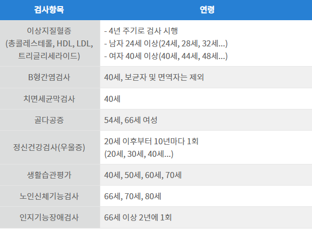 - 직장가입자 : 비사무직은 매년, 사무직은 짝수 연도 출생자