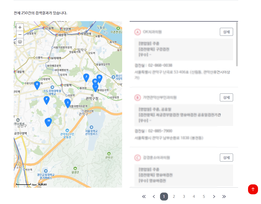 2. 지역 등을 선택해 주시고 검색을 눌러 줍니다.