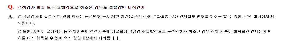 ※ 다만, 교통법규 위반 등이 사후에 추가로 발견될 경우 특별감면 대상에서 제외될 수 있으며, 행정심판·행정소송으로 처분이 집행정지 중인 경우에는 대상자라 하더라도 시스템상 확인이 안 될 수 있으니 해당 시·도경찰청에 문의 바랍니다.